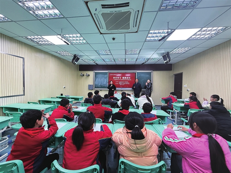 近日,城南新区特邀心理咨询师围绕“快乐学习 健康成长”主题,为车逻镇小学学生代表开展了一场心理健康辅导,帮助学生缓解学业压力与社交困惑,全方位护航学生健康成长。图为活动现场。