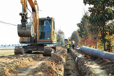 与此同时,在龙虬镇境内的龙卸线自来水总管道更新工程现场,10多名施工人员在施工机械的配合下,一边开挖深沟,一边吊装管道,一边回土填埋,环环相扣,有条不紊。 “龙卸线自来水总管道原来管径只有35CM,更新后的管径达到了50CM,可同时满足龙虬至卸甲全线所有用水户特别是企业和项目的高质量供水需求。”市水利局现场管理人员介绍,此次全市老旧供水管网更新改造工程不仅是对城乡供水质量的提升,更为各地经济发展提供了更有力的水资源保障。