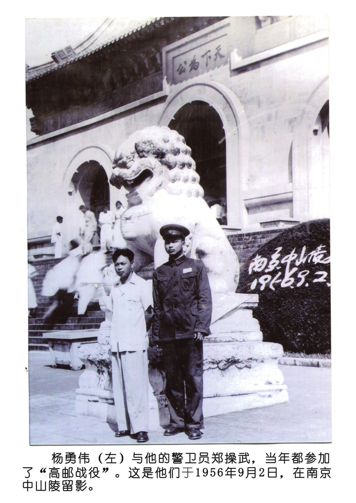 据有关史料记载,在“高邮战役”中,攻打南门的是8纵68团。杨勇伟所在的7纵由粟裕司令员亲自坐镇指挥,先行消灭邵伯的日伪军,以阻止在扬州一带的国民党部队来邮增援。陶勇指挥的8纵同时扫清高邮城外围敌军据点。杨勇伟所率7纵59团3营在邵伯东面的7纵司令部附近担任警戒防御任务,没有直接参加解放邵伯的战斗。邵伯解放后,59团3营奉命经车逻转到高邮南门,并配合8纵成为攻打南门的又一支主攻营。