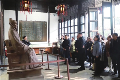 在史可法纪念馆,讲解员以捐俸筑城、与士民同甘共苦、召才礼贤、废除苛政等故事的形式,生动展现了史可法的廉洁、勤政、忠义等精神品质,全体党员干部深深感动于史可法“苟利社稷、死生以之”的爱国主义精神和清正廉洁的为官之道。