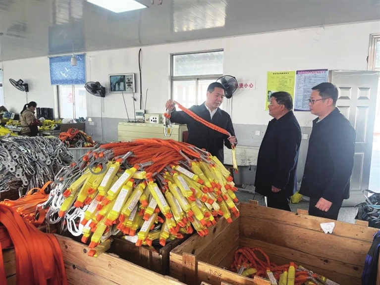 在顺威消防,陈正斌实地查看企业主销产品生产流程、核心设备运行状态,了解生产用电情况,记录相关诉求;在恒泰消防,陈正斌与企业负责人围绕生产经营及订单状况深入交流,仔细询问订单数量、交付周期等情况,同时现场查看了企业反映的生产区域基础设施问题;在宏达防护,陈正斌了解企业产能、销售及利润等经营现状,询问是否有扩产计划及相关初步设想。