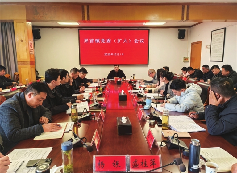 12月1日上午,界首镇召开党委(扩大)会议,在界党政班子全体成员,各村(社区)党总支书记,镇属部门主要负责人参加会议。镇党委副书记、镇长崔明海主持会议并讲话。