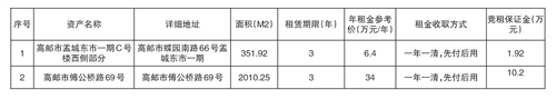 具体招租细节及要求请参见招租单位招租公告(公告发布网址:http://ggzyjyzx.yangzhou.gov.cn/gyfzx/ 产权交易)。