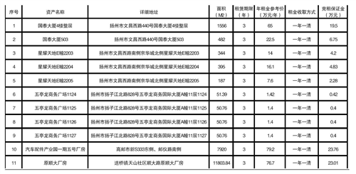 具体招租细节及要求请参见招租单位招租公告(公告发布网址:http://ggzyjyzx.yangzhou.gov.cn/gyfzx/ 产权交易)。