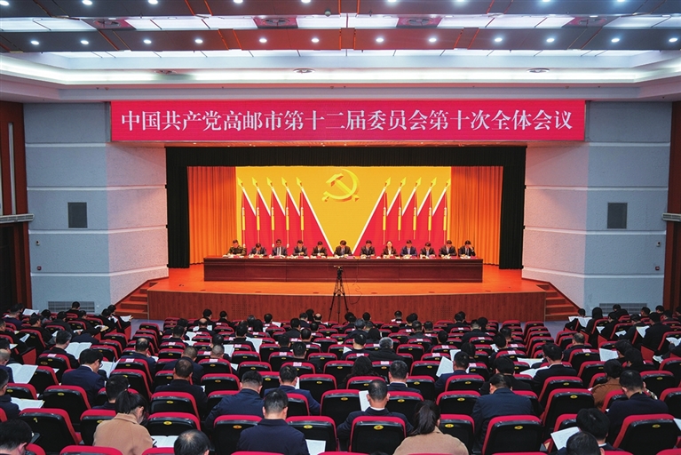 本报讯(记者 葛维祥)中国共产党高邮市第十二届委员会第十次全体会议于2025年12月31日在高邮举行。全会坚持以习近平新时代中国特色社会主义思想为指导,全面贯彻落实党的二十大和二十届历次全会精神,深入学习贯彻习近平总书记对江苏工作重要讲话精神,认真落实中央经济工作会议部署,按照省委十四届十次全会、省委经济工作会议、扬州市委八届十二次全会要求,回顾总结2025年和“十四五”以来主要工作,研究部署“十五五”和2026年任务,动员全市上下砥砺奋进新征程,开拓创新再攀高,奋力谱写“强富美高”新高邮现代化建设新篇章。