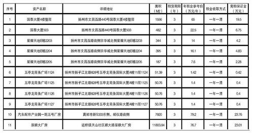 具体招租细节及要求请参见招租单位招租公告(公告发布网址:http://ggzyjyzx.yangzhou.gov.cn/gyfzx/ 产权交易)。