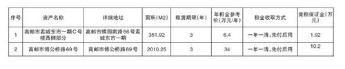 有意者请在2025年12月30日10时00分至2026年1月13日16时30分,在扬州市公共资源交易中心高邮分中心网站(http://ggzyjyzx.yangzhou.gov.cn/gyfzx/)交易响应方登入注册报名,缴纳保证金。(挂牌报名期满,如未征集到意向承租方,按 5个工作日为周期延迟,最多延迟 2个周期,竞价时间同期顺延)。