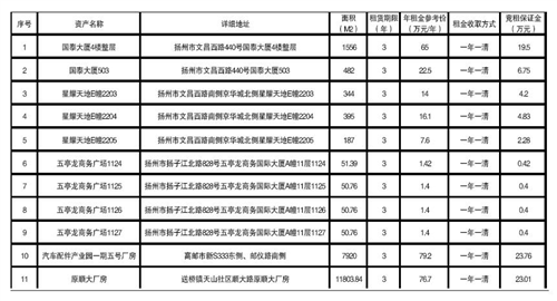 具体招租细节及要求请参见招租单位招租公告(公告发布网址:http://ggzyjyzx.yangzhou.gov.cn/gyfzx/ 产权交易)。