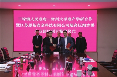 | 三垛镇人民政府—常州大学政产学研合作暨江苏恩基安全科技有限公司超高压细水雾产业园区项目签约仪式 |