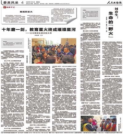 | 4月4日,《人民政协报》刊登市政协《刘春生:生命的“野火”》文章。 |