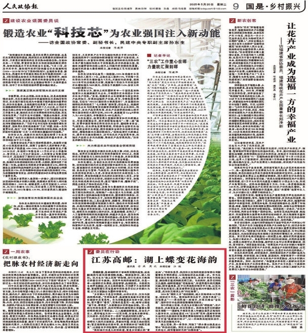 | 5月20日,《人民政协报》刊登市政协《江苏高邮:湖上蝶变花海韵》文章。 |