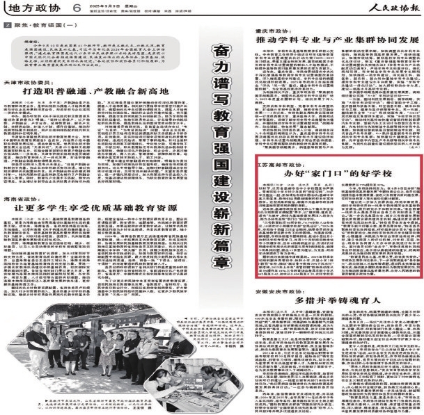 | 9月9日,《人民政协报》刊登市政协《办好“家门口”的好学校》文章。 |