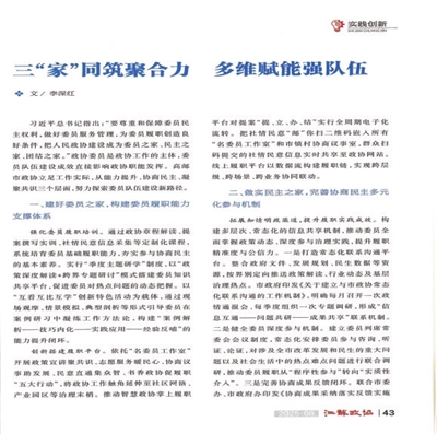 | 《江苏政协》第6期刊登李深红主席《三“家”同筑聚合力,多维赋能强队伍》署名文章。 |