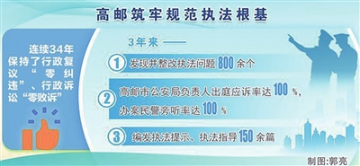 “能够持续实现‘双零’,关键在于我们建立了风险防控、动态评估、沟通协调、争议化解、剖析问责等‘五大机制’,为规范执法工作构筑了全方位的安全堤坝。”高邮市公安局法制大队负责人沈后芳说。
