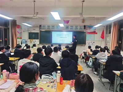 武安派出所终坚持“谁执法谁普法”,由社区民警担任校园法制副校长,在常学常新中不断提升授课质量,精心为青少年系好人生第一粒“扣子”。一是以思想道德为约束。积极创新载体、平台,通过“唱歌曲、学模范、诵经典、谈感悟”的方式,扎实开展红色教育,引导青少年培育和践行社会主义核心价值观,结合自身从警经历讲述奋斗历程,带动学生立鸿鹄志、做奋斗者。二是以法纪法规为准绳。以《未成年人保护法》《预防未成年人犯罪法》两法中“九种不良行为”及“九种严重不良行为”为重点,通过交流研讨、主题板报、辩论竞赛等多种形式,寓教于欢乐、润物于有声,邀请学生代表参观公安警营,让学生零距离、沉浸式感受法律的威严和温情。三是以安全防范为红线。针对中学生参与网络活动较多的特点,以反诈、网络安全为主题在中学开展专题讲座、角色体验、有奖竞答等活动;针对小学生交通意识薄弱的特点,在小学推动打造“交通安全情景教育基地”;针对幼儿认知发育不完全的特点,在幼儿园组织开展防拐演练,在互动感知中增强青少年自我保护、自我成长能力。2025年来,共计送法进校园100余(场)次,受教师生家长达3万余人次,实现幼小中全覆盖。