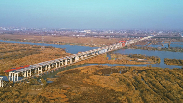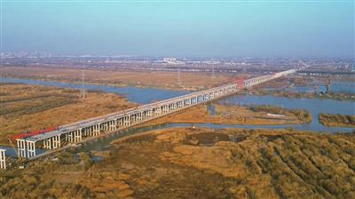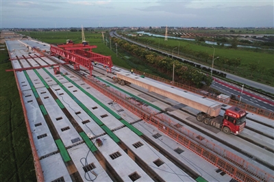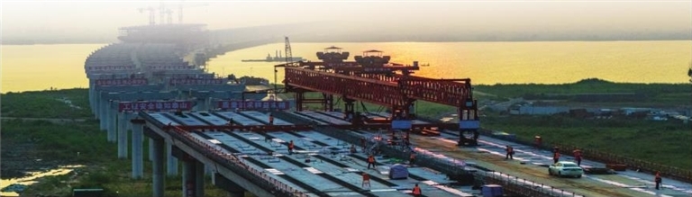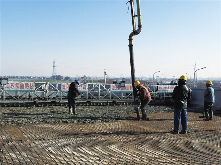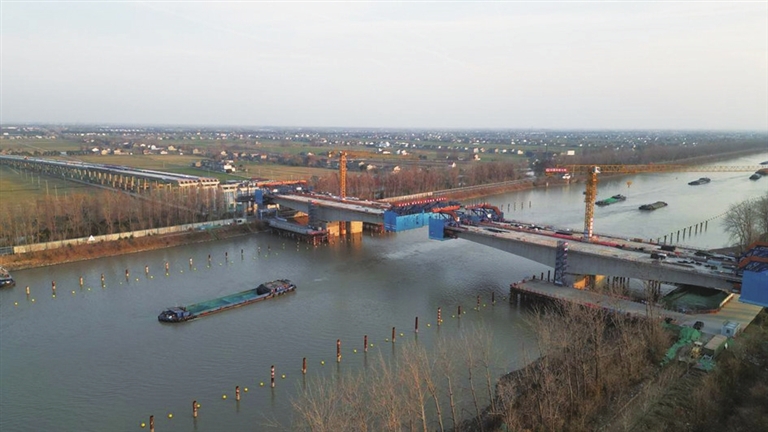 | 高邮湖特大桥正在进行跨京杭运河悬浇梁施工 |