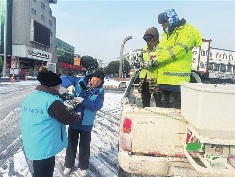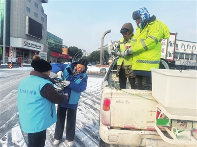 20日一大早,市太阳雨志愿者协会的志愿者们便熬制好姜枣茶,前往市区多个点位,为环卫工人、交警等奋战在严寒一线的工作者送上热气腾腾的姜枣茶和小面包,为大家送去了寒冬里的一份温暖。 李晓莉 孔令玲 摄影报道