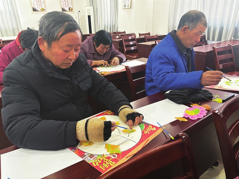 近日,送桥镇南茶村开展“巧手做挂历,‘杏’福进万家”银杏拓印新年挂历制作活动。活动现场,村民们在工作人员的指导下学习了摆叶定形、构图配色等植物拓印基本知识,制作了独一无二的新年挂历,在亲手实践中感受传统工艺的魅力。图为活动现场。