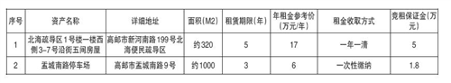 具体招租细节及要求请参见招租单位招租公告(公告发布网址:http://ggzyjyzx.yangzhou.gov.cn/gyfzx/ 产权交易)。有意者请在2026年1月30日10时00分至2026年2月12日16时30分,在扬州市公共资源交易中心高邮分中心网站(http://ggzyjyzx.yangzhou.gov.cn/gyfzx/)交易响应方登入注册报名,缴纳保证金。