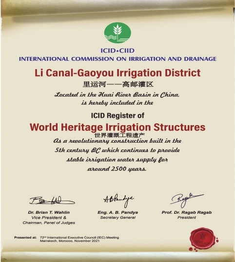 “里运河-高邮灌区”成功入选世界灌溉工程遗产名录,实现了全省在该领域“零的突破”。以此为契机,我市系统推进灌区保护与现代化升级,高邮灌区相继荣获“全国标准化管理示范灌区”“全国灌区水效领跑者”等多项国家级荣誉,并作为全省唯一代表入选全国数字孪生灌区先行先试名单。遗产专题纪录片登陆央视,保护管理办法正式出台,实现了世界级遗产的科学保护与活态传承,极大提升了高邮水利文化的知名度和影响力。