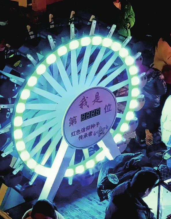 到20世纪80年代,中国经济复苏,人民生活向好,高邮灯会盛况空前。有部门单位的财力人力支持,有现代机械和科技的参与,花灯体量大,样式新,可观赏性强。“鲤鱼跃龙门”色彩绚丽,生动活泼;宝塔彩灯,高耸挺拔,雄伟壮观;地球花灯,壮硕多彩,车走灯转;生肖花灯,造型别致,栩栩如生,或夸张,或憨萌,或俏皮,其生动形态给人审美的愉悦和故事性的遐想。最博人眼球的是“巨龙腾飞”灯。设计者把一条栩栩如生的金龙盘旋在一台机动吊车的长臂上,金龙随车行似有腾飞于云中之感。行走中巨龙不时口喷烈火,身冒金星,十分壮观!