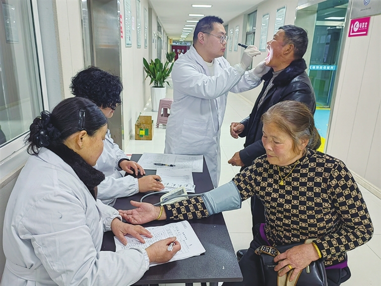 春节期间,不少随子女在外的老年人陆续返乡。汤庄镇卫生院抢抓这一有利时机,于2月26日至27日,为65岁及以上返乡老人(含常住非户籍)开设健康体检专场,送上暖心“健康大礼包”,赢得群众一致好评。图为体检现场。