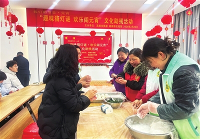2月28日下午,市残联联合城南新区残联,组织“残疾人之家”、轮椅舞蹈队及残疾人代表,开展“猜灯谜、包汤圆、闹元宵”主题活动。现场欢声笑语,温馨热闹,大家共猜雅趣、同包甜汤圆,在品尝美食中感受节日的温情与社会关怀。图为活动现场。
