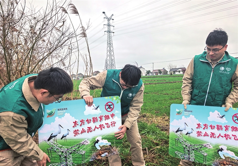 今年3月3日是第十三个世界野生动植物日。2日,市供电公司“护线爱鸟”志愿者前往周山镇、界首镇,在国家一级保护野生动物东方白鹳密集区开展爱鸟宣传活动。同时,考虑到当前高邮境内50多对东方白鹳进入孵化期,期间会引来鸟类拍摄者,志愿者们在有东方白鹳巢穴的输电铁塔旁,安装了印有“东方白鹳育雏中 禁止无人机飞行”的图文标识牌,提醒鸟类拍摄者不要使用无人机拍照,以防范无人机触及输电线、惊扰东方白鹳。图为宣传活动现场。