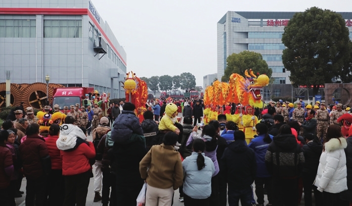 锣鼓喧天辞旧岁,民俗巡游闹新春。活动现场,由舞龙、舞狮、湖船花旦、鼓号、汉服、踩高跷等组成的9支特色方阵依次登场。参演人员身着特色盛装,队列整齐、精神抖擞,从曙光公司出发进行巡游,谱写同心奋进的新篇章。