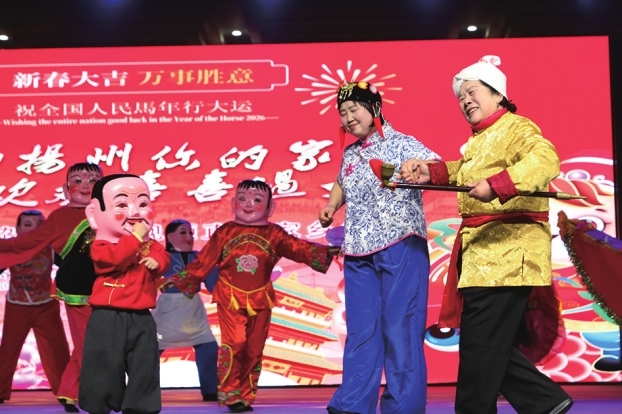 好戏连台贺团圆,文化惠民暖民心。文艺演出现场气氛热烈,节目精彩纷呈、接地气、有温度。灵动优美的舞蹈、昂扬动听的歌曲、诙谐生动的扬州评话、原汁原味的本土民歌、妙趣横生的木偶戏轮番登场,演员们倾情演绎,用艺术传递美好。