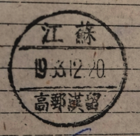 1970年代末,推行二简字,汉留简化为汉畄,使用江苏高邮/汉畄镇(代)邮政日戳,“江苏高邮/225641汉畄”邮政编码日戳使用至1990年代。
