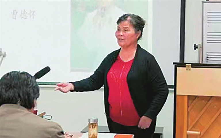 曹德怀,高邮民歌第三代代表性传人。多次在全国、省市演出中获奖。2015年,她成为中央音乐学院研究生院“特聘讲师”,在全国最高音乐殿堂上,她无伴奏演唱了《高邮西北乡》《小小刘姐姐》等民歌。