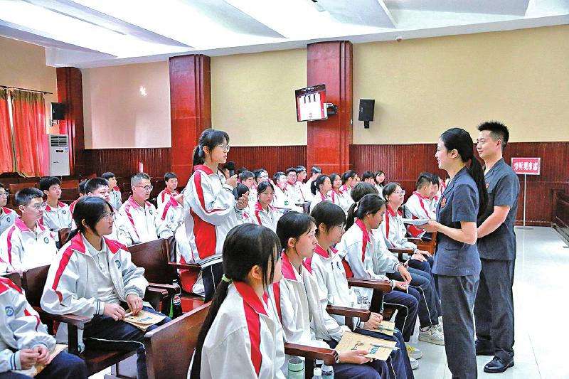 庭审结束后,法庭变成普法课堂。法官助理结合刚刚审结的案件,为同学们讲解了盗窃罪的相关法律规定,并抛出了一连串引人深思的法律问题,同学们争先恐后地举手回答。