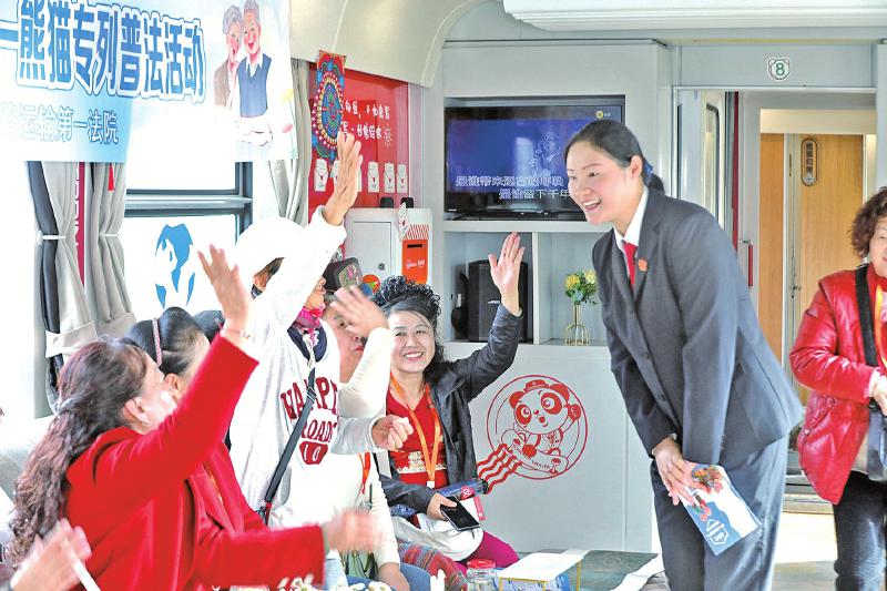 14时19分,列车驶入潼南站,干警结束了当天的普法宣传活动。“姑娘,先会儿你们讲的案例我还有问题想问,你们下次还来不?”临别时,李阿姨拉着干警的手问。“来!我们计划把‘熊猫专列’普法做成系列,下次来讲人格权、网络信息甄别。”干警笑着回答。