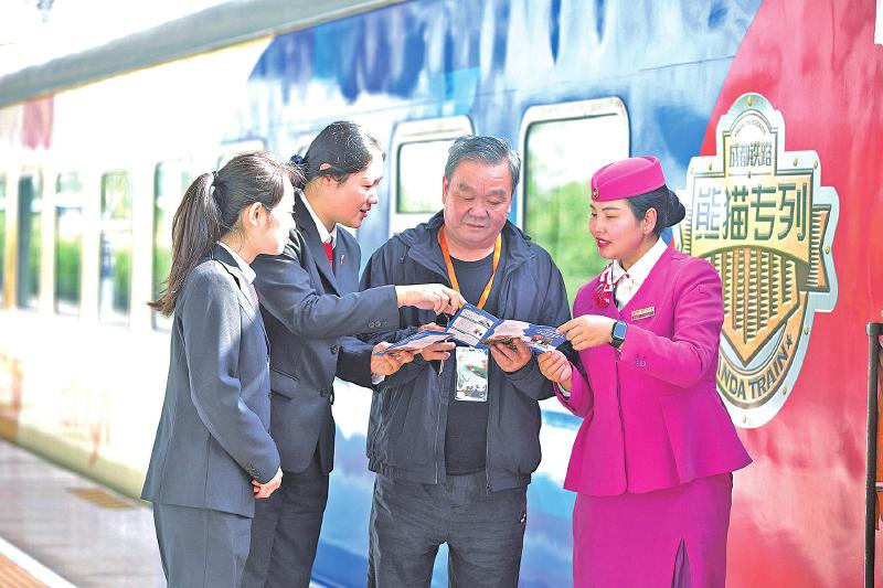 25日上午,一列绘着憨态熊猫图案的旅游专列从成都西站缓缓驶出,向着湖南衡阳奔去。
