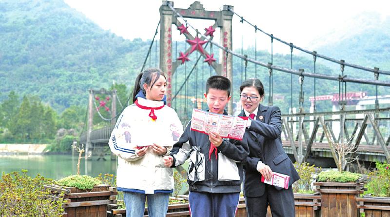 本报讯(四川法治报全媒体记者 杨棕贤 文/图)国道318线被誉为“中国人的景观大道”,飞仙关打卡点既是川藏交通要冲的历史见证,也是往来游客驻足休憩的文化地标。22日,芦山县法院立足区位优势,将法治宣传阵地延伸至这一“流量入口”,邀请20余名师生开展法治“打卡”318主题实践活动。通过“沉浸式”“互动式”“体验式”的多元形式,将法律知识融入历史人文与自然风光之中,为孩子们送上了一堂别样的法治课。
