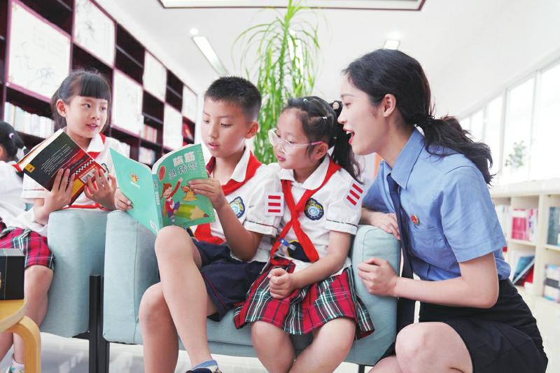 青年干警和小朋友们在一起 绵竹市人民检察院供图