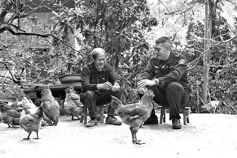 梅伊与村民老黎唠家常,提醒老黎“有事就找梅警官”