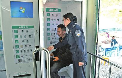 村民向交警咨询如何办理三轮摩托车牌照 交警现场为村民办理驾照 村民在交管服务直通车上体检 交管服务直通车开进山区,为村民带来家门口的车驾管服务 在提供业务办理的同时,交警同步开展交通安全宣传