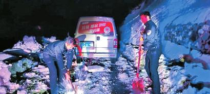 前方是未知的险阻,身后是群众的安危,他们用主动出击跨越大自然设置的“信息鸿沟”,将守护延伸到每一个信号无法抵达的角落。果然,在白雪覆盖的盘山路上,他们发现5辆车深陷雪坑,10余名群众在严寒与焦虑中进退两难。