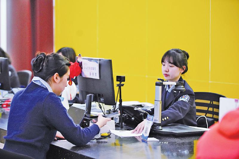 成都市公安局金牛区分局出入境管理大队女警办理业务 受访单位供图
