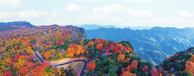 近日,旺苍县米仓山大峡谷4万余亩原始彩林连片成海,漫山遍野渐次晕染,绘就一幅绚丽的秋日油画。特约通讯员 陈绍海 摄
