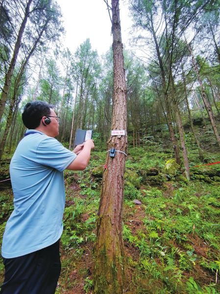记者注意到,部分树体上安有电子设备。“这是样本监测器,每天会自动上传目标树的胸径、树高、碳储量等数据。”张思丽说,“这便于实时掌握‘目标树’的生长动态,为后续精准管理提供科学数据。”