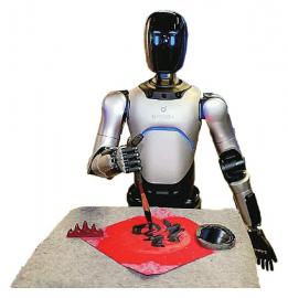 在江苏无锡惠山古镇的机器人体验中心 ,机器人正在写“福”字。