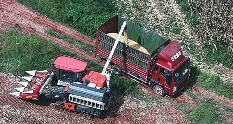 种粮大户陈善长说:“为最大限度确保粮食颗粒归仓,我们紧急调配了5台专用玉米割台,每天可收割玉米300多亩。”
