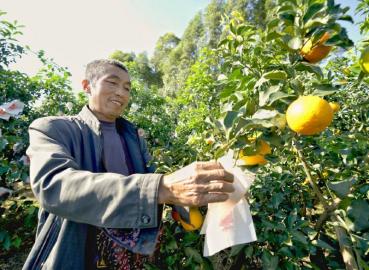 近日,绵阳市安州区柑橘现代农业园区内,果农正给柑橘套袋。 安州区柑橘现代农业园区柑橘种植面积达 1.2 万余亩,其中需套袋过冬的 品 种 占 7000 余亩。给柑橘套袋不仅能防虫防病、减轻霜冻,还能让果面更光洁,实现增产增收、优质优价。 张祖强 摄