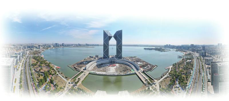 这是2025年3月19日拍摄的位于上海浦东新区的自贸区临港新片区滴水湖畔的西岛中银金融中心项目建设工地(无人机照片)。
