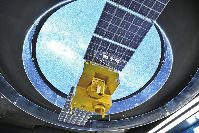 这是2025年7月1日在位于合肥的中电信量子信息科技集团有限公司科技体验馆内拍摄的“墨子号”量子卫星模型。