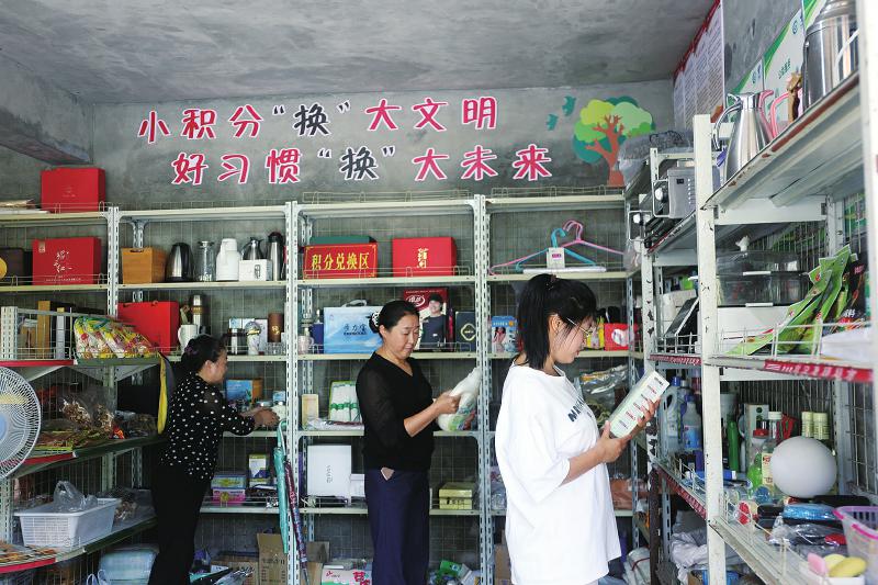 村里设有“家风积分超市”,与供销社、商铺合作,1积分抵1元,可兑换多种实用物品,每季度集中兑换日都很热闹。积分还与荣誉挂钩,季度领先家庭可优先参评先进,年度高分家庭会上榜表彰、公开颁奖,还有机会成为区镇典型。村民王丽因孝老爱亲积分高,被评为“好媳妇”,孩子也受带动积极挣积分。如今在村里,积分高的人更受尊重,村民参与家风建设的热情越来越高。