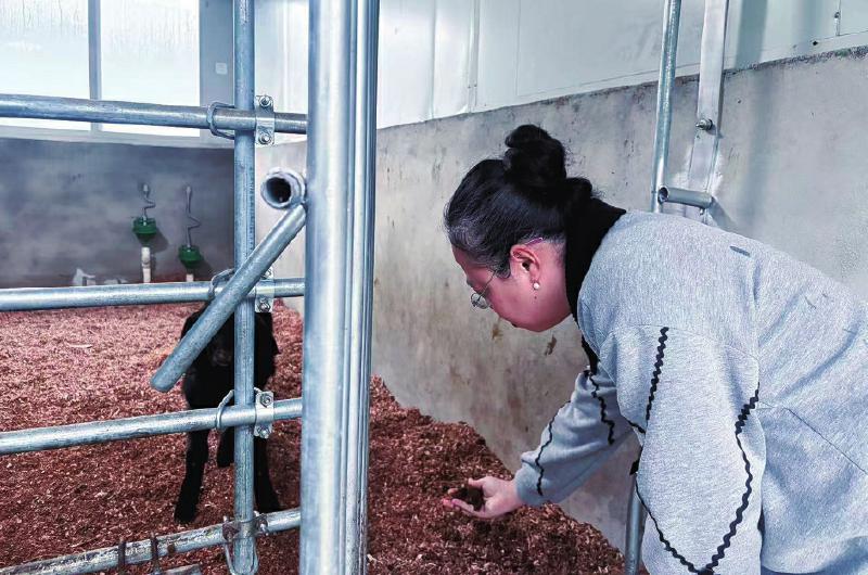 发酵床的“配方”同样体现着农业循环理念——原料由锯末以及菌包、秸秆等农业废弃物和发酵菌剂组成。“发酵床在养殖周期中持续分解动物粪便,出栏后还可直接作为优质有机肥出售。”邱时秀伸手触摸垫料后进一步介绍,“发酵床在微生物作用下分解养殖粪污并持续产热,就像铺了一张‘电热毯’,可有效缓解我省凉山州等高海拔地区冬季养羊的难题。”
